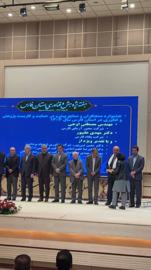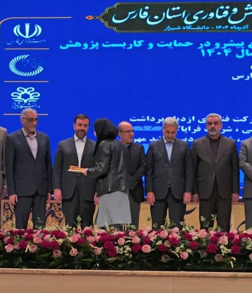 در آیین گرامیداشت هفته پژوهش و فناوری استان فارس که با حضور استاندار فارس، مدیران دستگاههای اجرایی، رؤسای دانشگاهها و فعالان حوزه علم و فناوری برگزار شد، از درنا سلیمانی، مدیر فنبازار منطقهای فارس بعنوان نهاد برتر حامی پژوهش و فناوری استان فارس تقدیر بهعمل آمد.
