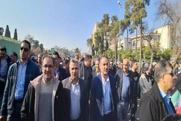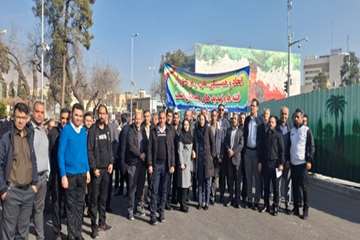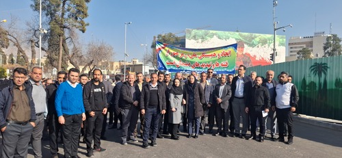حضور مدیر عامل و کارکنان شرکت شهرک های صنعتی فارس در راهپیمایی بزرگ مردمی در محکومیت اقدامات تروریستی عوامل بیگانه آمریکایی صهیونیستی