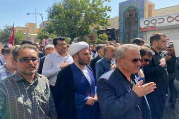 حضور مدیر عامل و کارکنان شرکت شهرک های صنعتی فارس در آیین تشییع پیکرهای ۲ شهید عملیات تروریستی حرم مطهر شاهچراغ (ع)