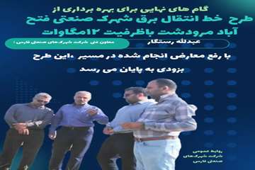 عبدالله رستگار، معاون فنی شرکت شهرکهای صنعتی فارس، در بازدید از طرح خط انتقال برق شهرک صنعتی فتحآباد مرودشت اعلام کرد: «این طرح که به طول ۱۲ کیلومتر در حال اجراست، در گام نهایی خود قرار دارد و ظرفیت تأمین ۱۲ مگاوات برق برای شهرک صنعتی فتحآباد را خواهد داشت. با بهرهبرداری از این طرح، بستر مناسبی برای تأمین برق پایدار واحدهای صنعتی این شهرک فراهم خواهد شد.»